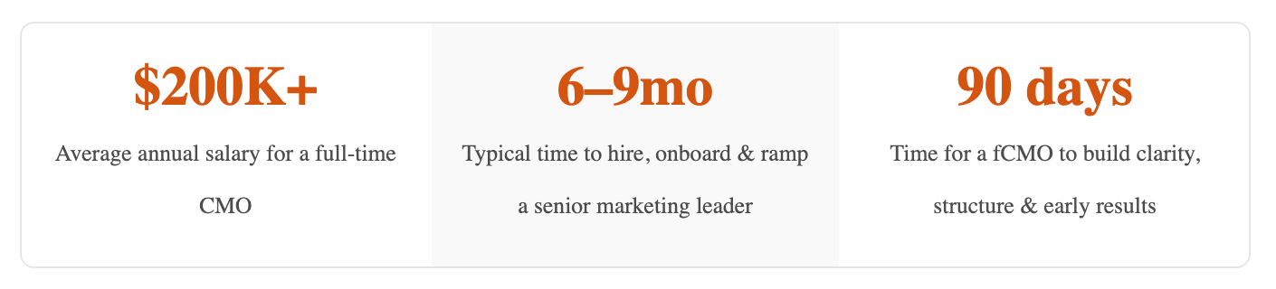 Strategic clarity isn't just a marketing outcome, it's a company-wide unlock. And it's often the single most valuable thing a fCMO delivers in their first 30 days.